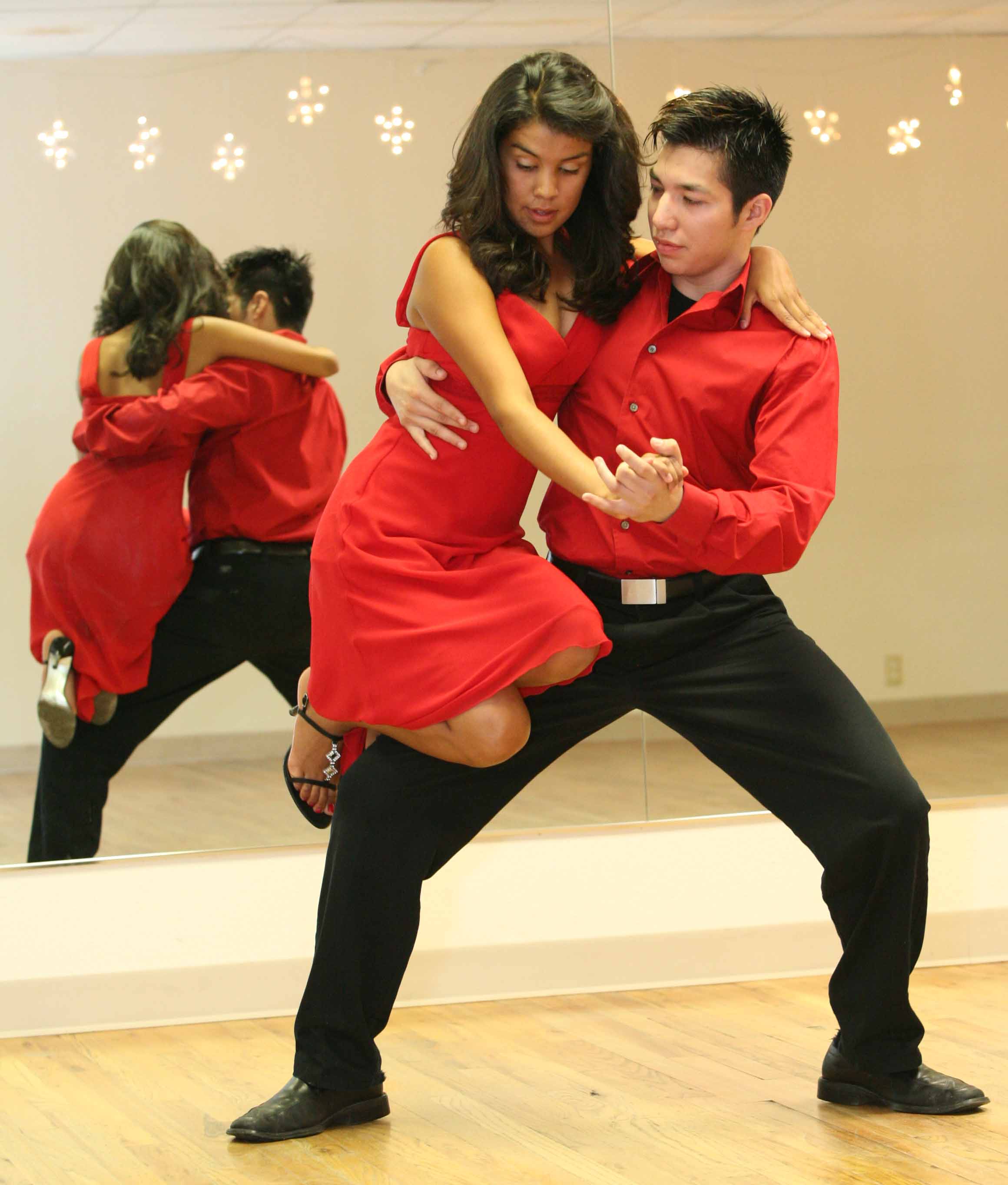 practices with Beatriz Gonzales, 16, their Argentine Tango moves.